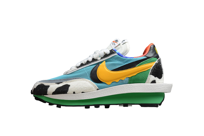 The Ben & Jerry’s x Nike LDWaffle x Sacai is a playful and imaginative collaboration that combines the iconic ice cream brand with Nike’s innovative LDWaffle silhouette, designed by Sacai. This unique sneaker features a colorful and eye-catching design inspired by Ben & Jerry’s signature ice cream packaging. With a mix of vibrant hues, cow print details, and dripping Swooshes, this sneaker is a bold statement piece that blends creativity and style. The double-stacked midsole and layered construction add to its distinctiveness, making it a must-have for sneaker enthusiasts who appreciate fun and unique designs.